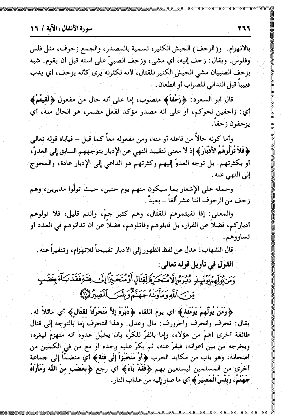 وَمَنْ يُوَلِّهِمْ يَوْمَئِذٍ دُبُرَهُ إِلاَّ مُتَحَرِّفاً لِقِتالٍ أَوْ مُتَحَيِّزاً إِلى فِئَةٍ فَقَدْ باءَ بِغَضَبٍ مِنَ اللَّهِ وَمَأْواهُ جَهَنَّمُ وَبِئْسَ الْمَصِيرُ (16)