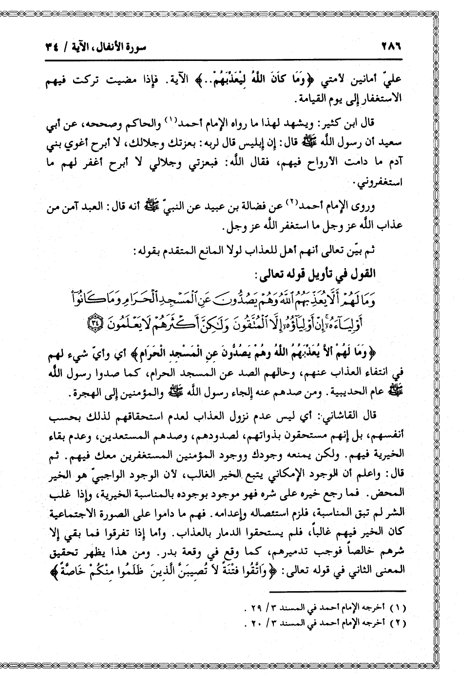 القول في تأويل قوله تعالى: [سورة الأنفال (8) : آية 34]