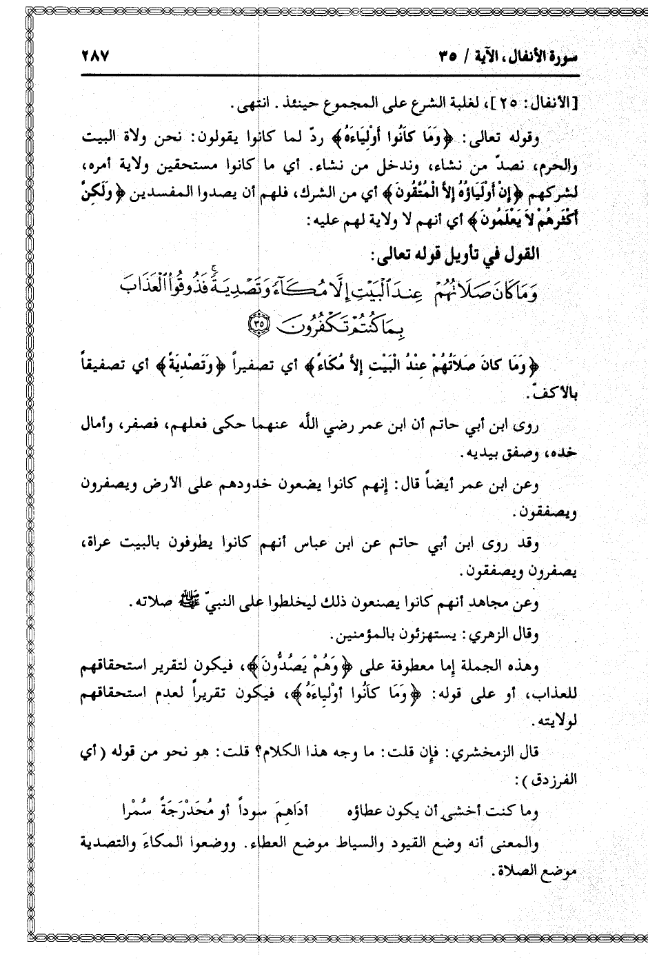 القول في تأويل قوله تعالى: [سورة الأنفال (8) : آية 35]