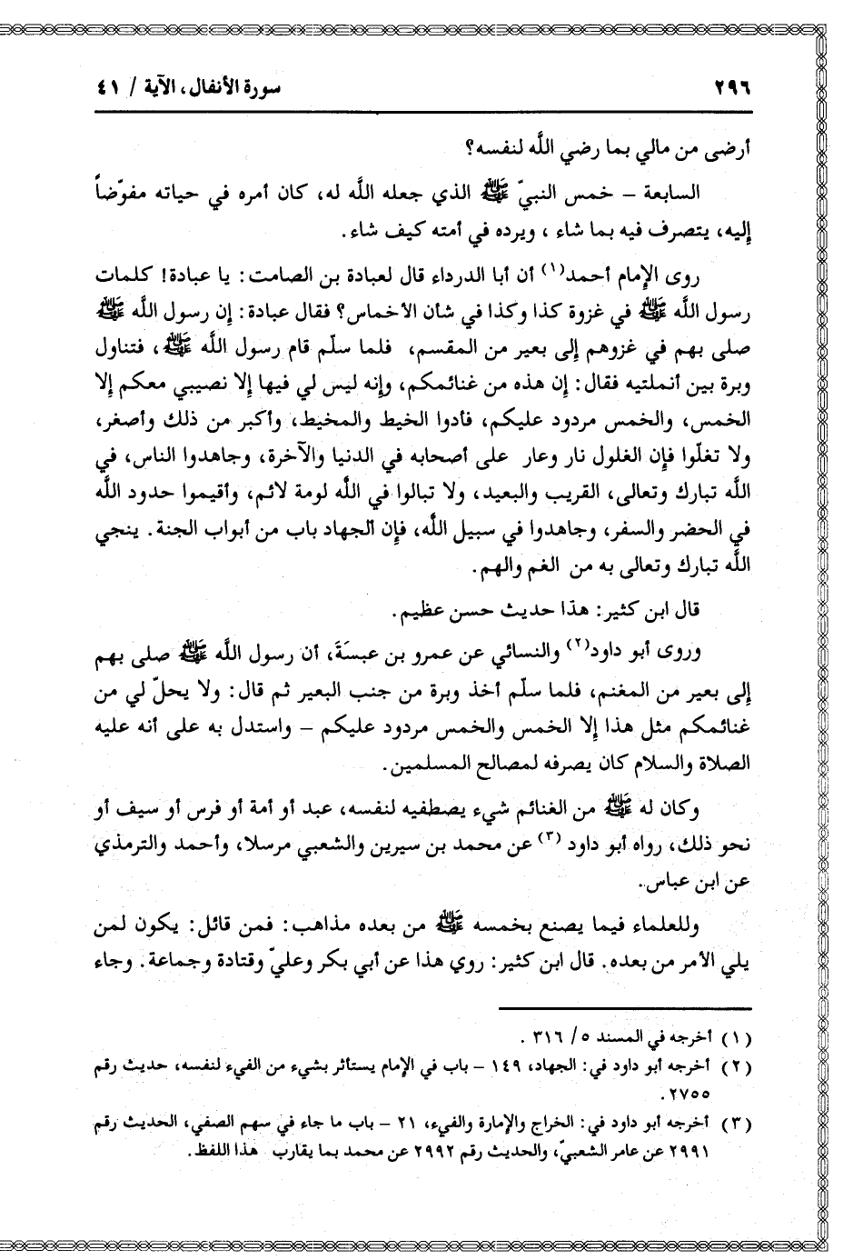 (2) أخرجه أبو داود في: الجهاد، 149- باب في الإمام يستأثر بشيء من الفيء لنفسه، حديث رقم 2755.