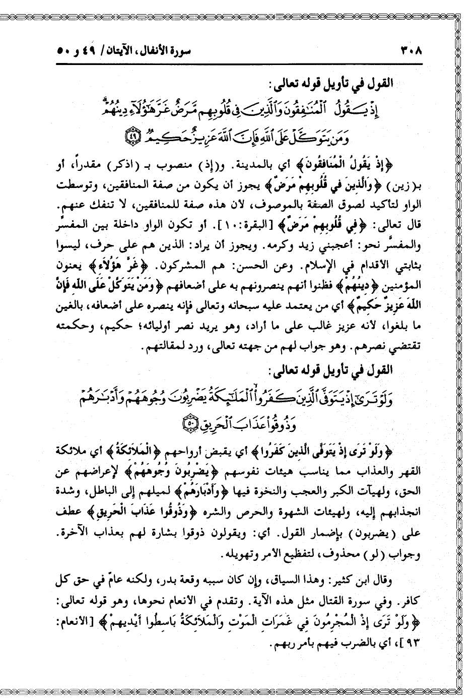 القول في تأويل قوله تعالى: [سورة الأنفال (8) : آية 49]