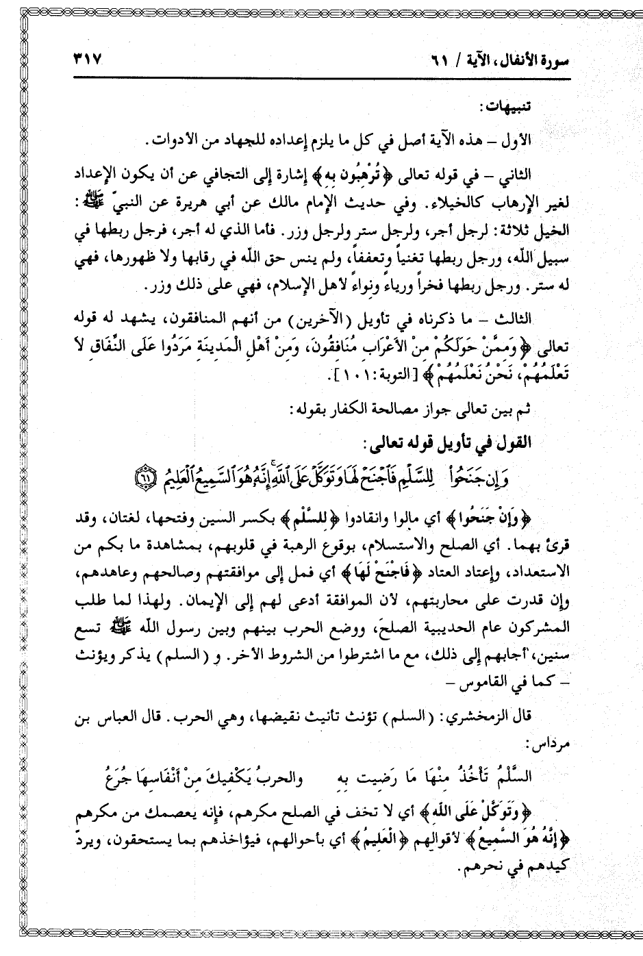 وَإِنْ جَنَحُوا لِلسَّلْمِ فَاجْنَحْ لَها وَتَوَكَّلْ عَلَى اللَّهِ إِنَّهُ هُوَ السَّمِيعُ الْعَلِيمُ (61)