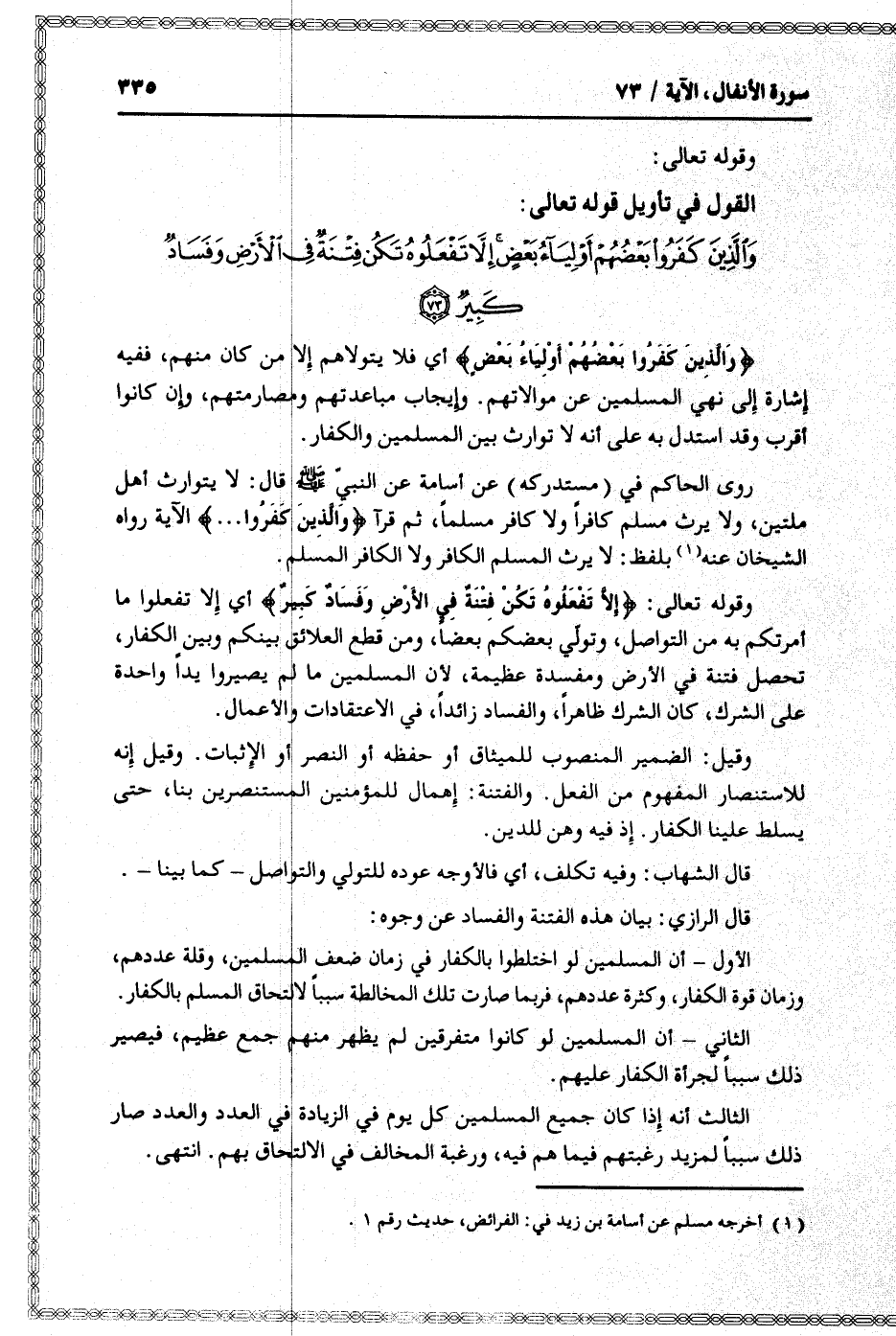 القول في تأويل قوله تعالى: [سورة الأنفال (8) : آية 73]