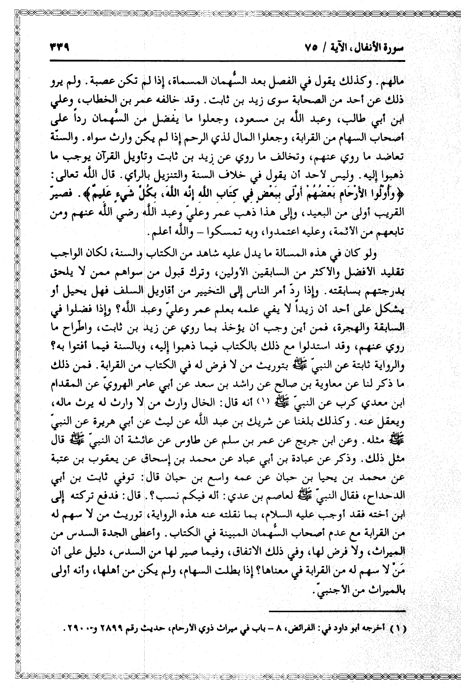 (1) أخرجه أبو داود في: الفرائض، 8- باب في ميراث ذوي الأرحام، حديث رقم 2899 و 2900.