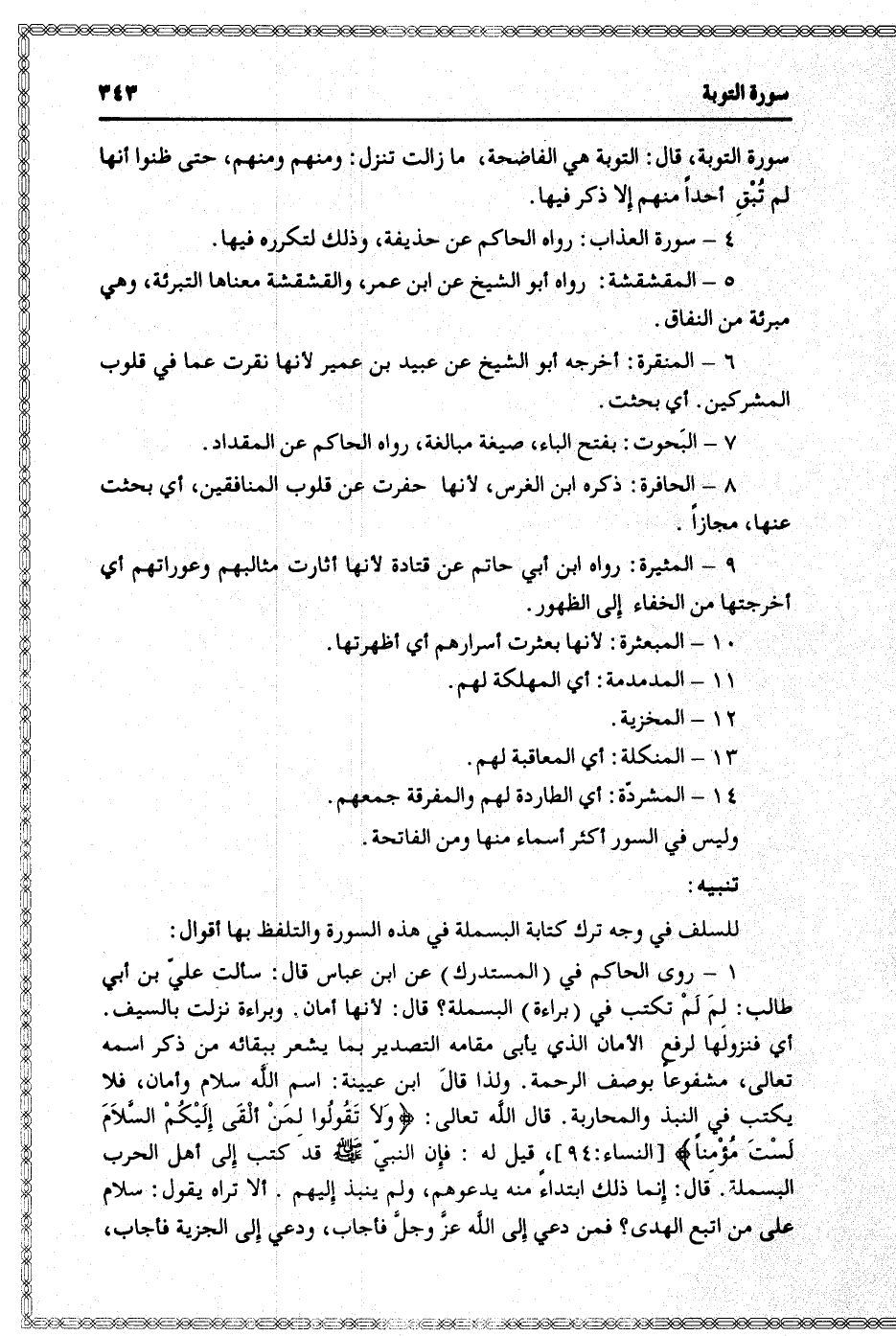 للسلف في وجه ترك كتابة البسملة في هذه السورة والتلفظ بها أقوال:
