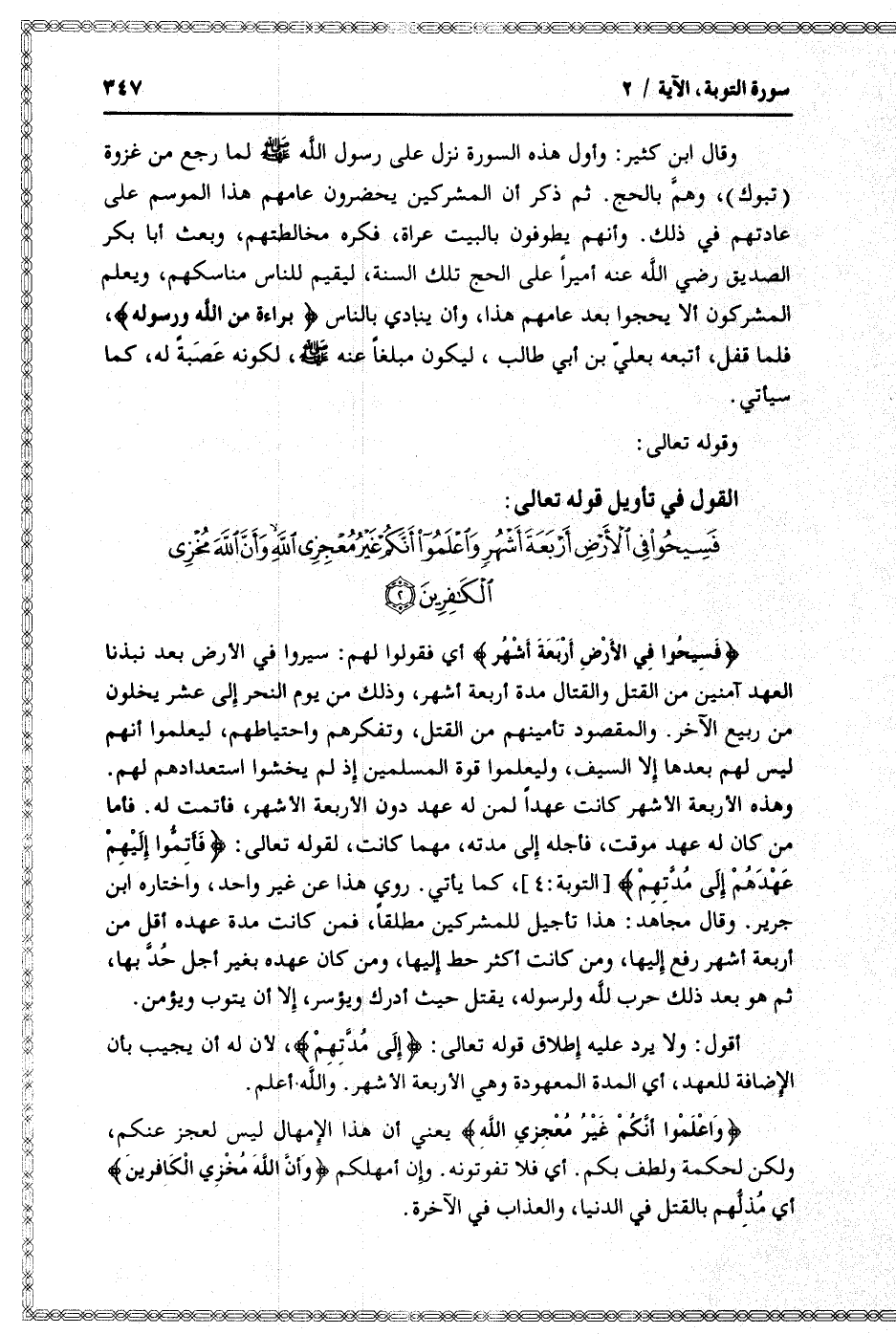 القول في تأويل قوله تعالى: [سورة التوبة (9) : آية 2]