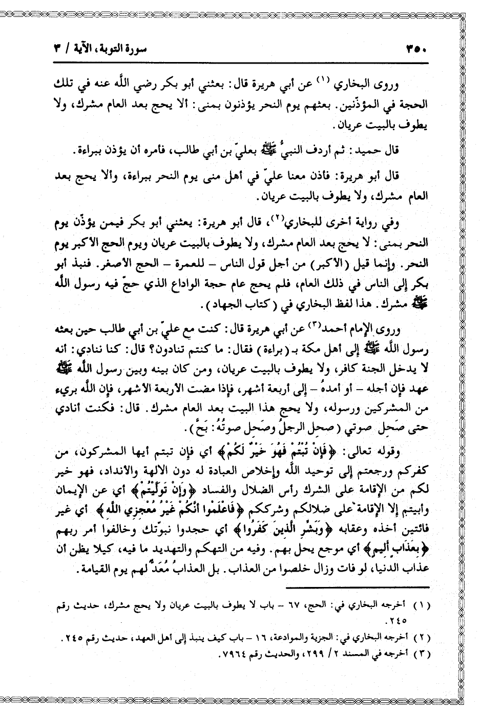 (1) أخرجه البخاري في: الحج، 67- باب لا يطوف بالبيت عريان ولا يحج مشرك، حديث رقم 245.