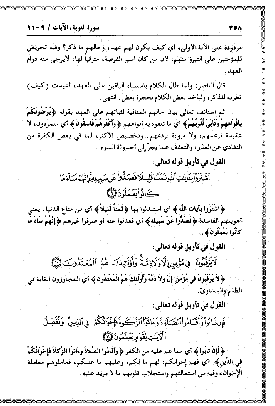 القول في تأويل قوله تعالى: [سورة التوبة (9) : آية 10]