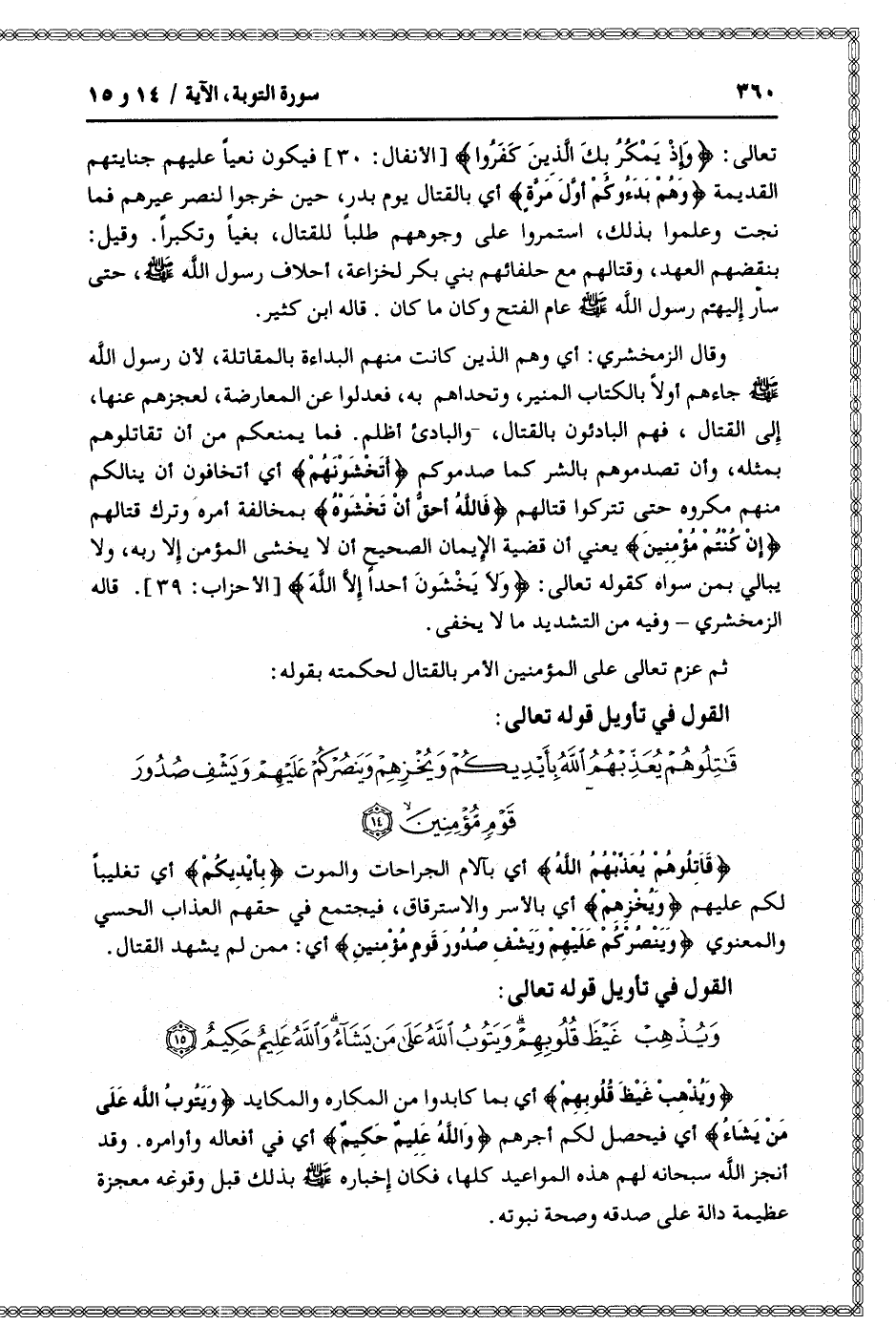 القول في تأويل قوله تعالى: [سورة التوبة (9) : آية 14]
