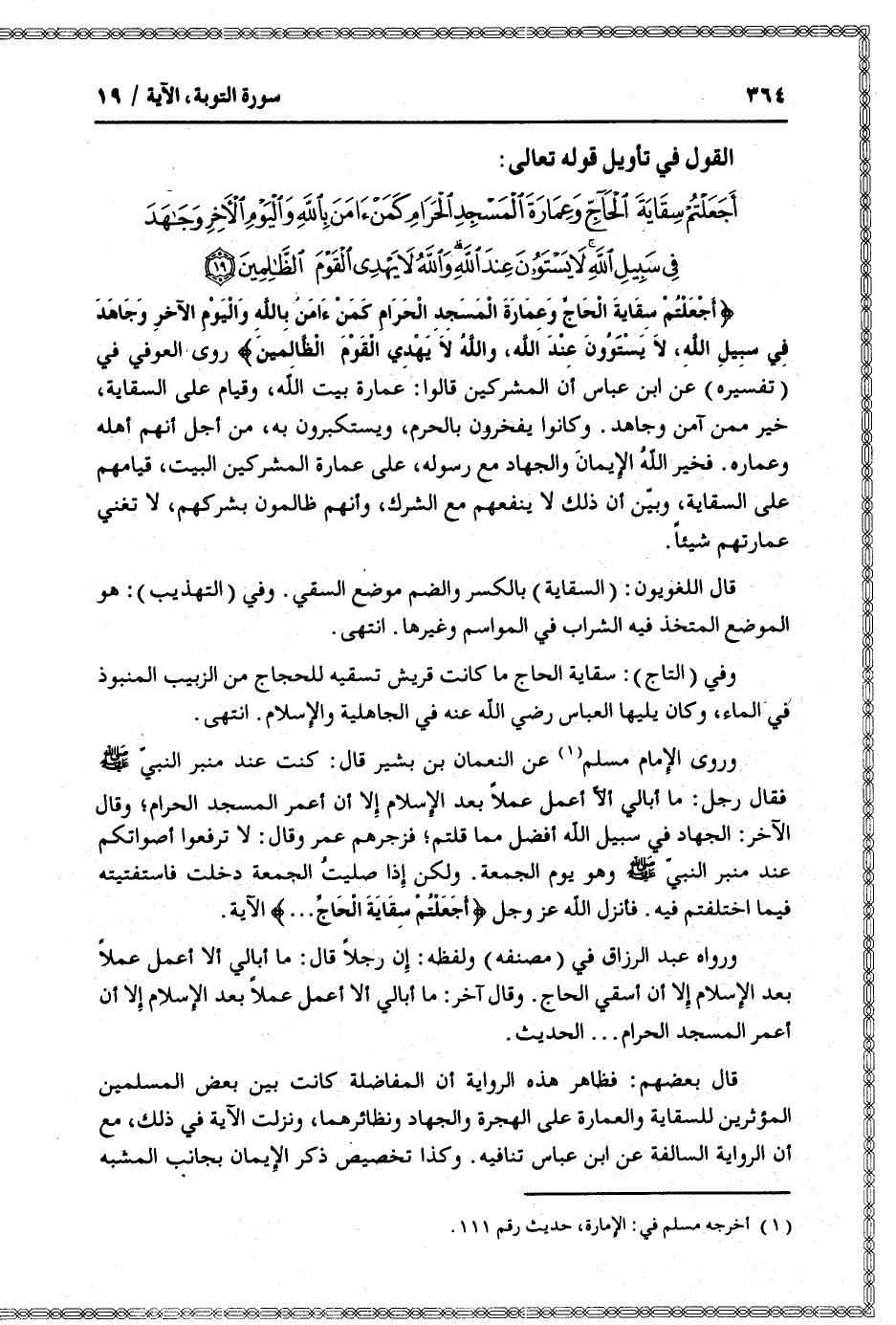 القول في تأويل قوله تعالى: [سورة التوبة (9) : آية 19]