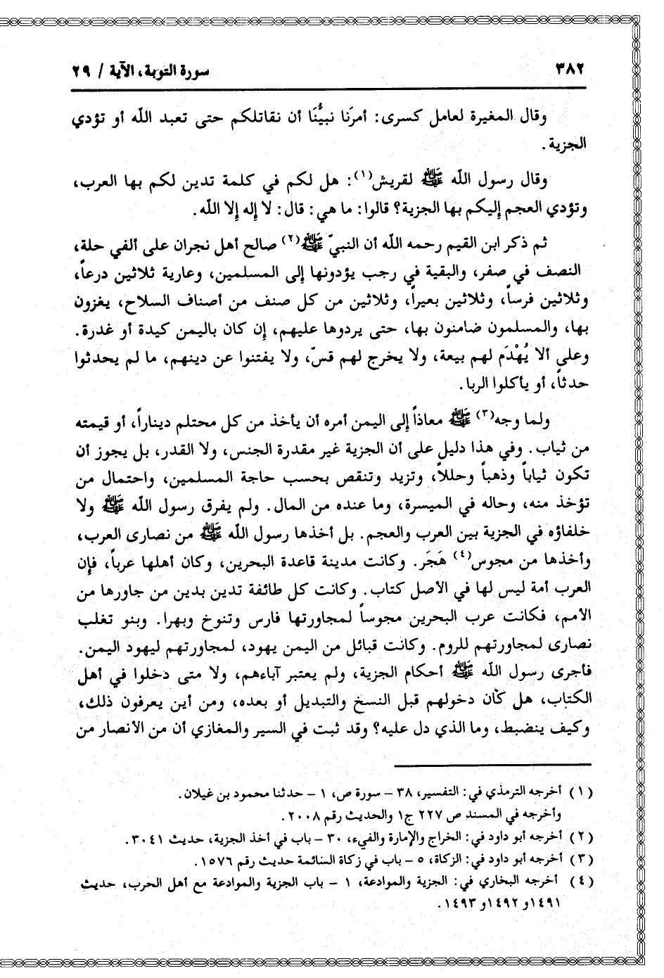 (4) أخرجه البخاري في: الجزية والموادعة، 1- باب الجزية والموادعة مع أهل الحرب، حديث 1491 و 1492 و 1493.