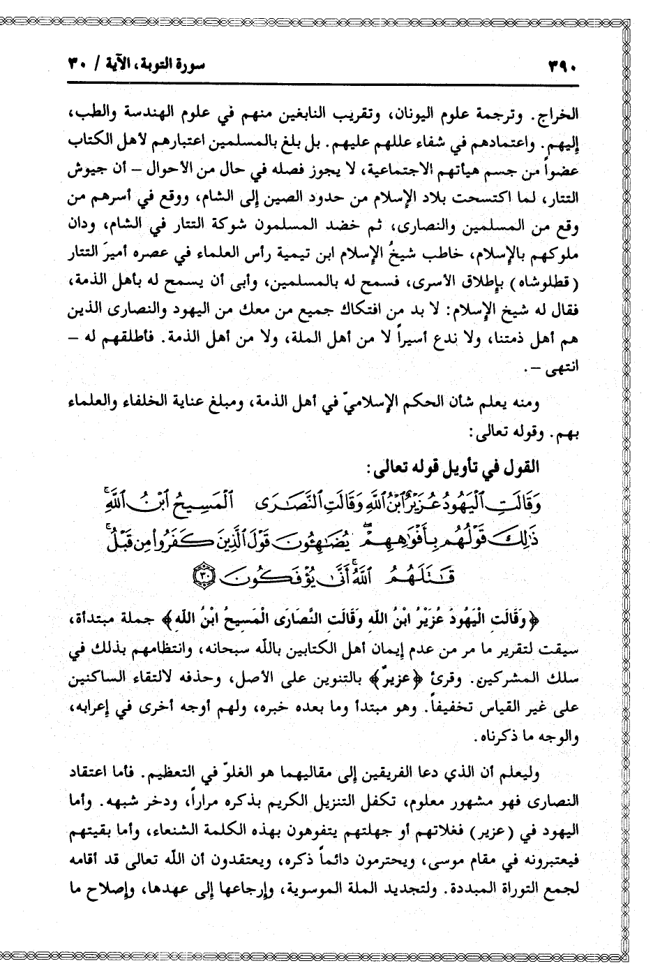 القول في تأويل قوله تعالى: [سورة التوبة (9) : آية 30]