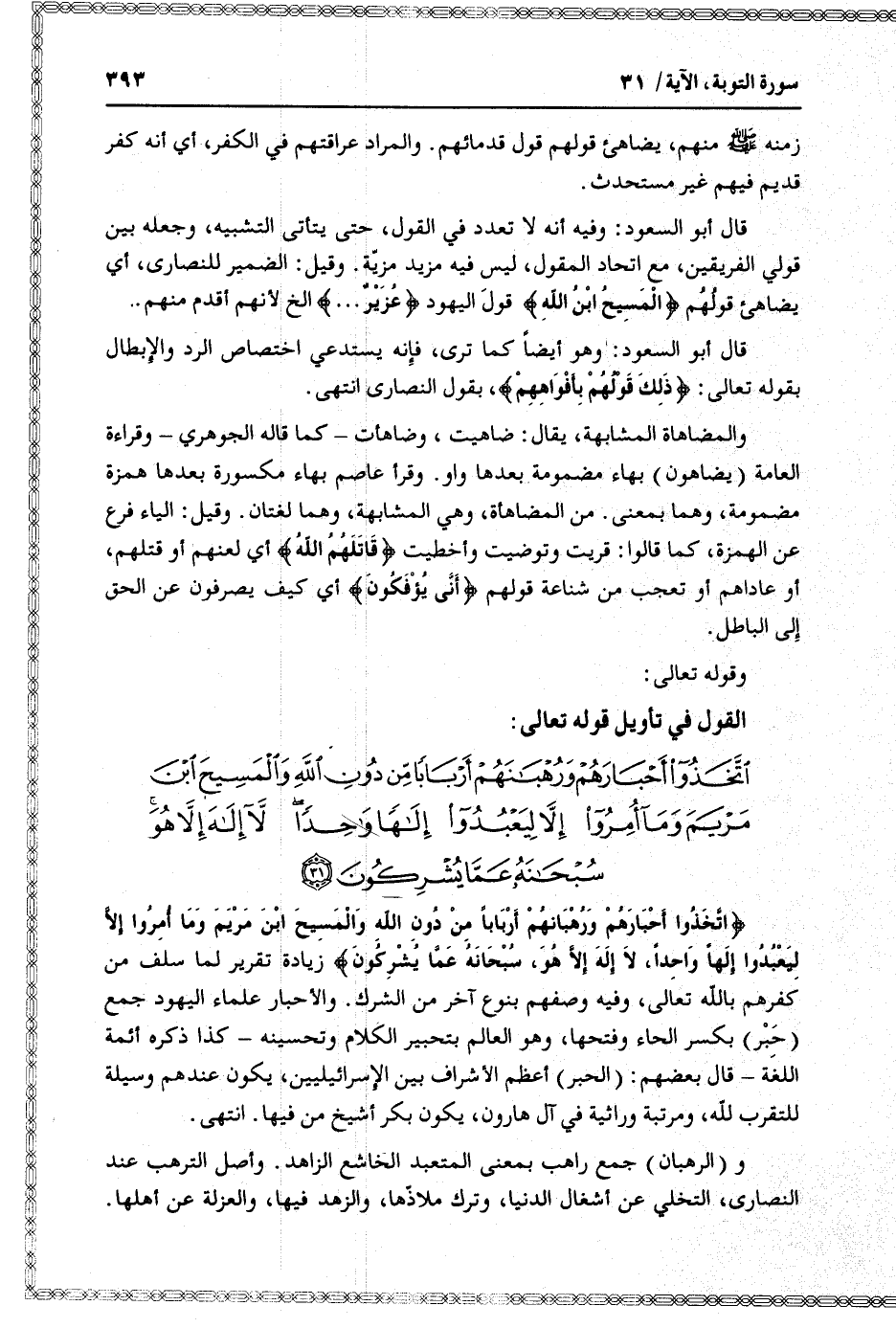 القول في تأويل قوله تعالى: [سورة التوبة (9) : آية 31]