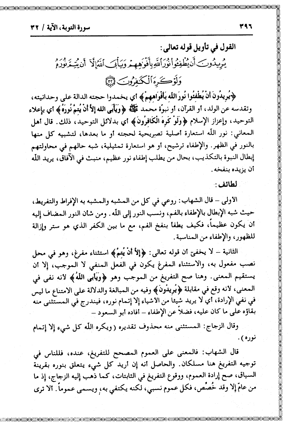 القول في تأويل قوله تعالى: [سورة التوبة (9) : آية 32]