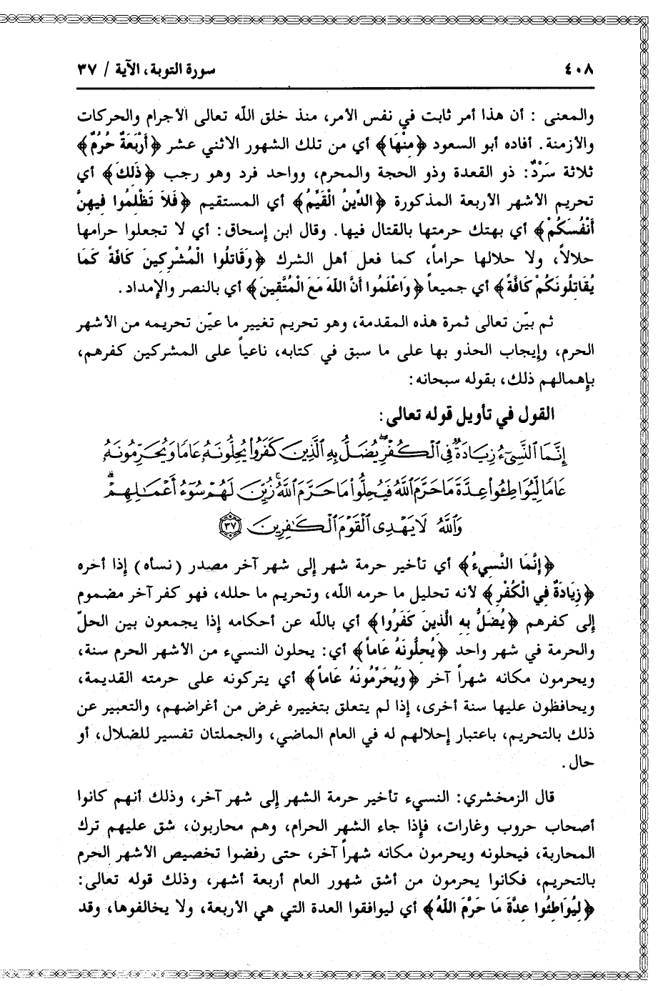 القول في تأويل قوله تعالى: [سورة التوبة (9) : آية 37]