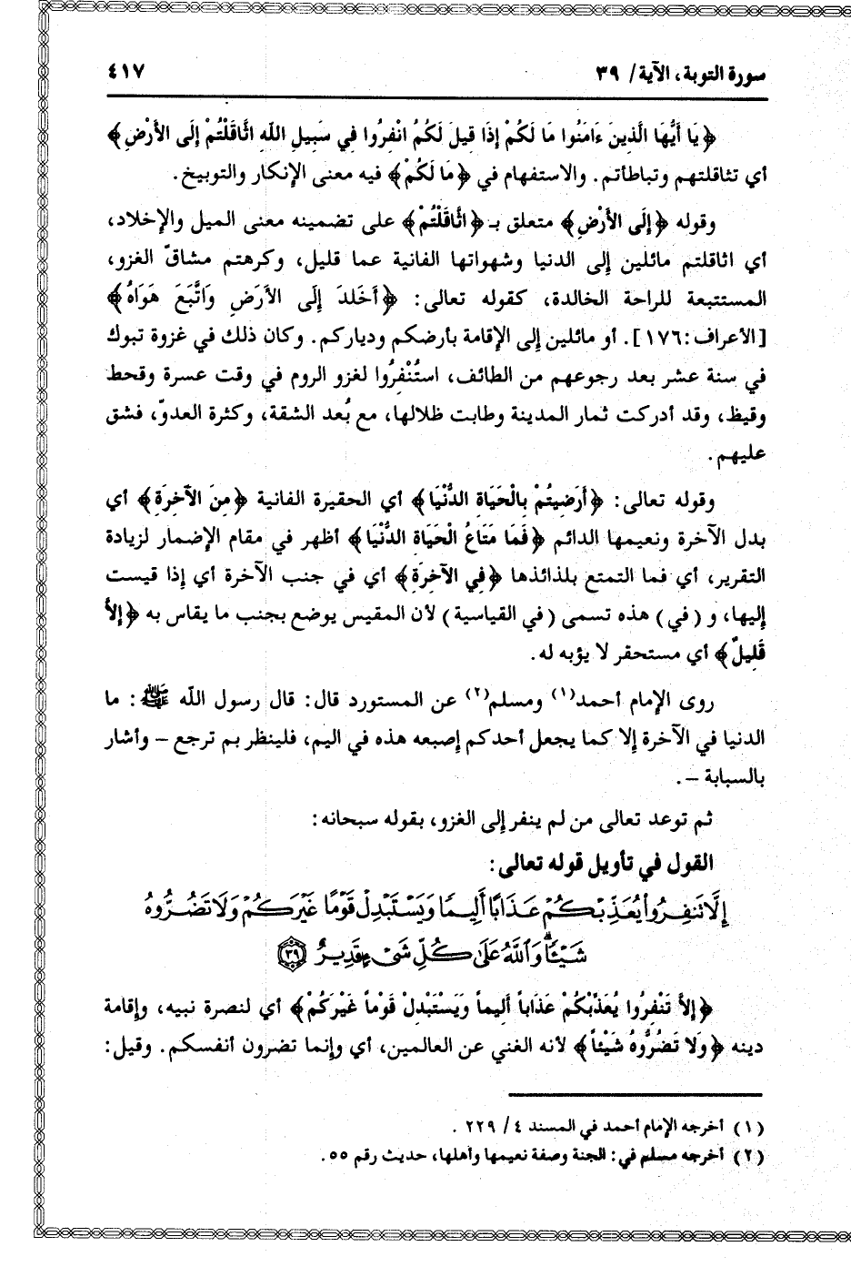 القول في تأويل قوله تعالى: [سورة التوبة (9) : آية 39]