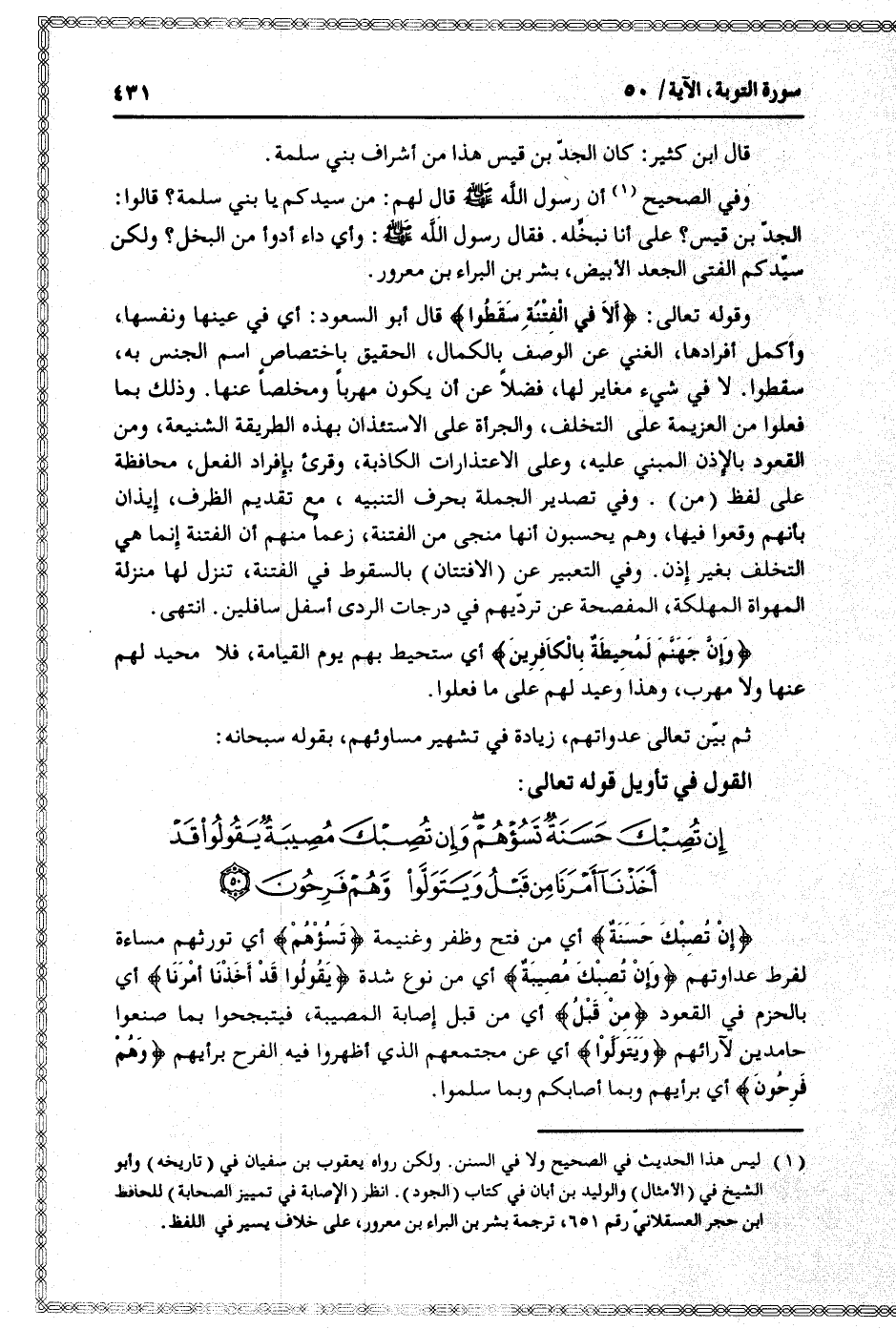 إِنْ تُصِبْكَ حَسَنَةٌ تَسُؤْهُمْ وَإِنْ تُصِبْكَ مُصِيبَةٌ يَقُولُوا قَدْ أَخَذْنا أَمْرَنا مِنْ قَبْلُ وَيَتَوَلَّوْا وَهُمْ فَرِحُونَ (50)