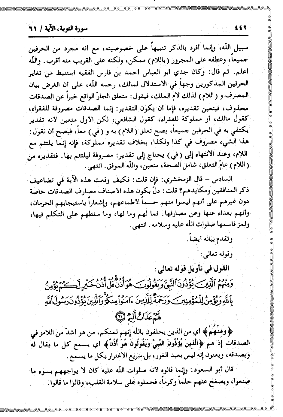 وَمِنْهُمُ الَّذِينَ يُؤْذُونَ النَّبِيَّ وَيَقُولُونَ هُوَ أُذُنٌ قُلْ أُذُنُ خَيْرٍ لَكُمْ يُؤْمِنُ بِاللَّهِ وَيُؤْمِنُ لِلْمُؤْمِنِينَ وَرَحْمَةٌ لِلَّذِينَ آمَنُوا مِنْكُمْ وَالَّذِينَ يُؤْذُونَ رَسُولَ اللَّهِ لَهُمْ عَذابٌ أَلِيمٌ (61)