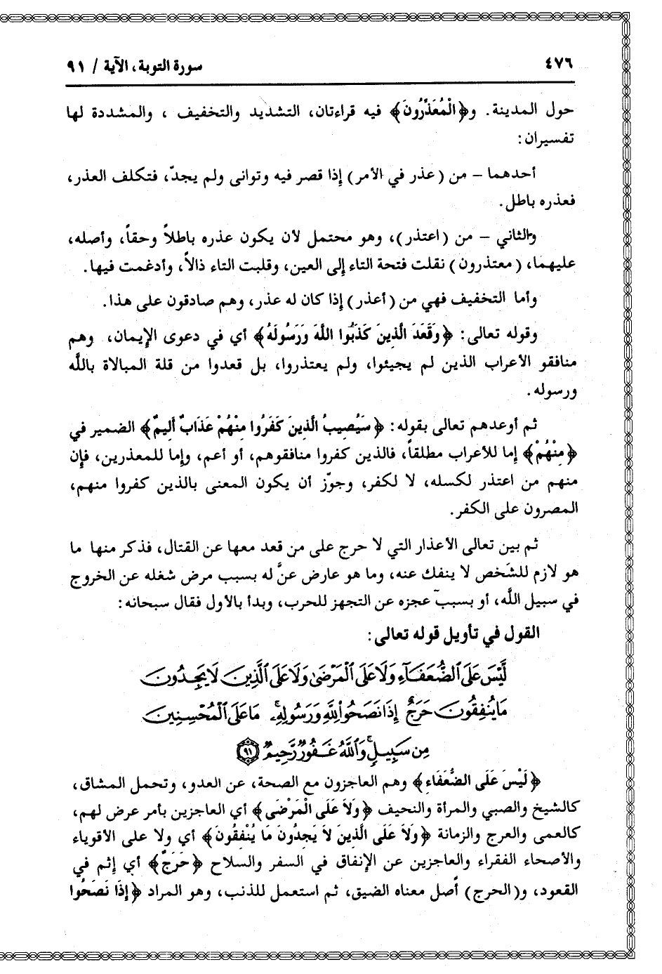 القول في تأويل قوله تعالى: [سورة التوبة (9) : آية 91]