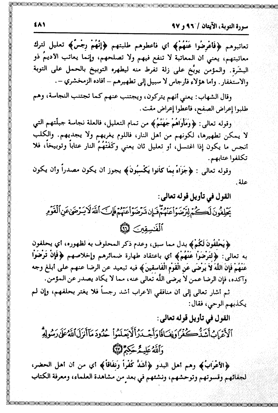 القول في تأويل قوله تعالى: [سورة التوبة (9) : آية 96]