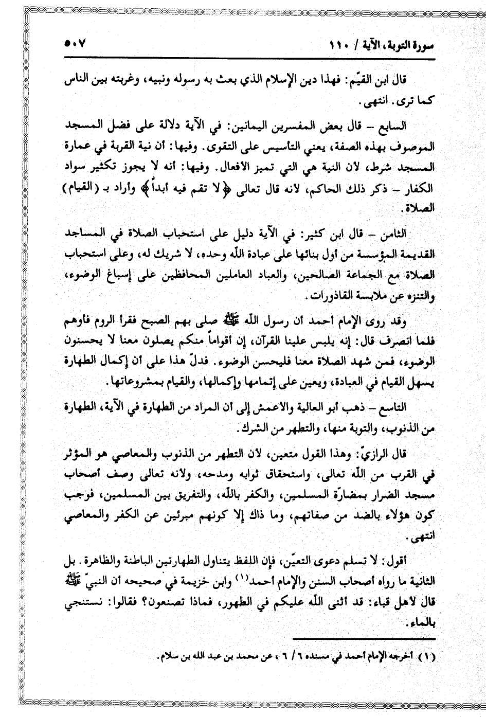 (1) أخرجه الإمام أحمد في مسنده 6/ 6، عن محمد بن عبد الله بن سلام.
