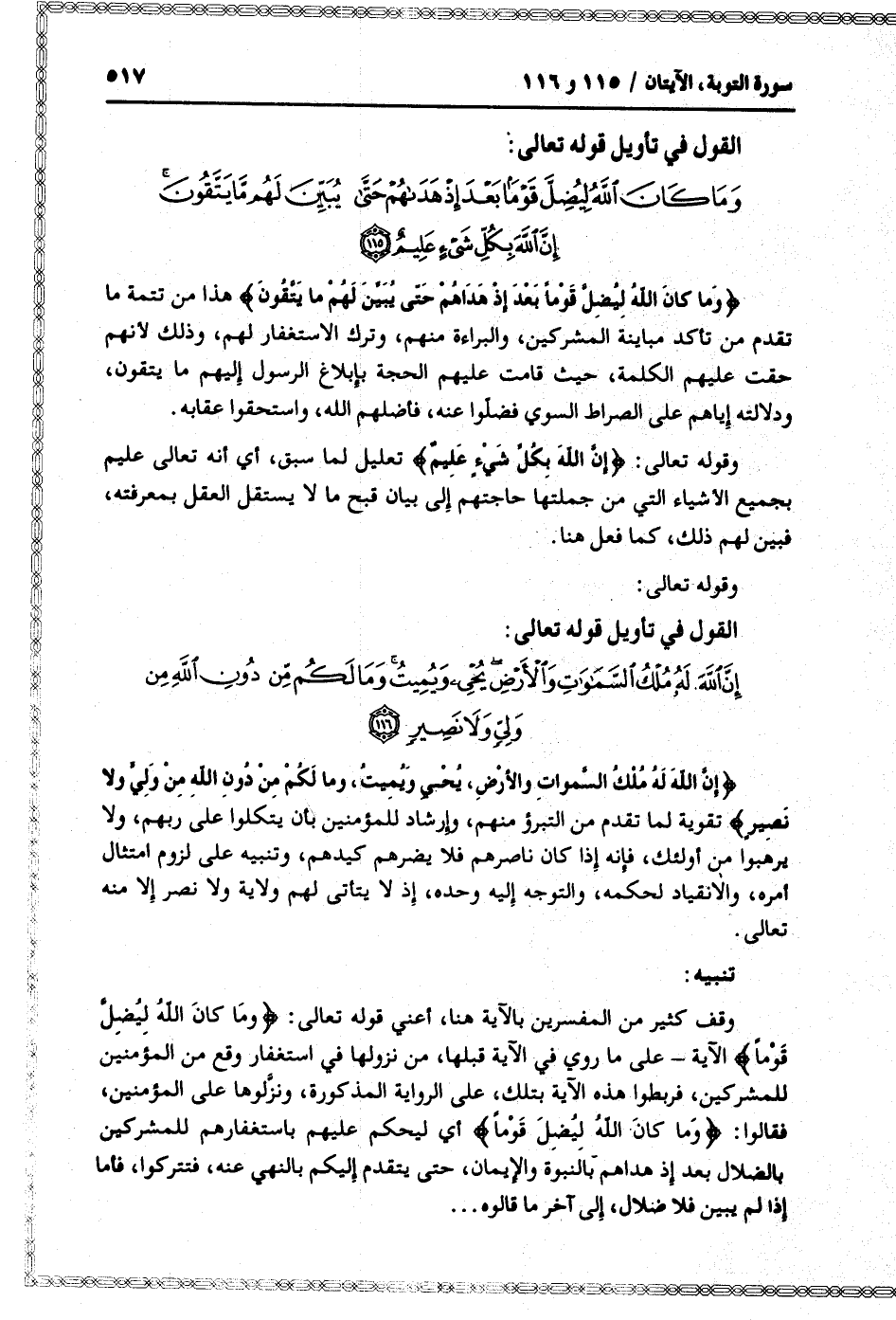 القول في تأويل قوله تعالى: [سورة التوبة (9) : آية 115]