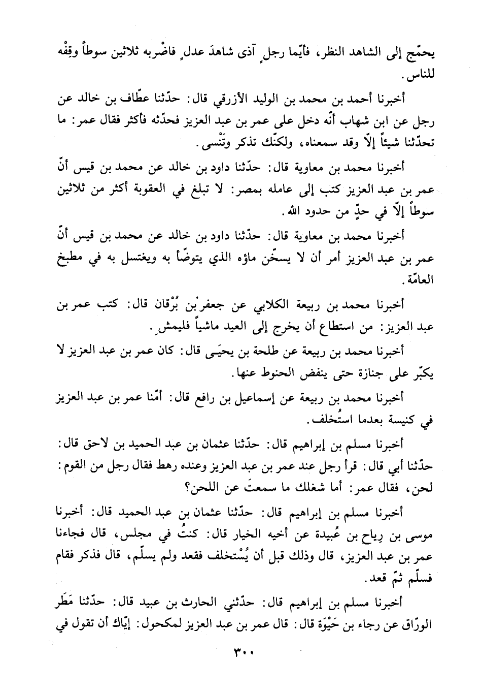 أَخْبَرَنَا مُحَمَّدُ بْنُ مُعَاوِيَةَ قَالَ: حَدَّثَنَا دَاوُدُ بْنُ خَالِدٍ عَنْ مُحَمَّدِ بْنِ قَيْسٍ أَنَّ عُمَرَ بْنَ عَبْدِ الْعَزِيزِ كَتَبَ إِلَى عَامِلِهِ بِمِصْرَ: لا تَبْلُغْ فِي الْعُقُوبَةِ أَكْثَرَ مِنْ ثَلاثِينَ سَوْطًا إِلا فِي حَدٍّ مِنْ حُدُودِ اللَّهِ.