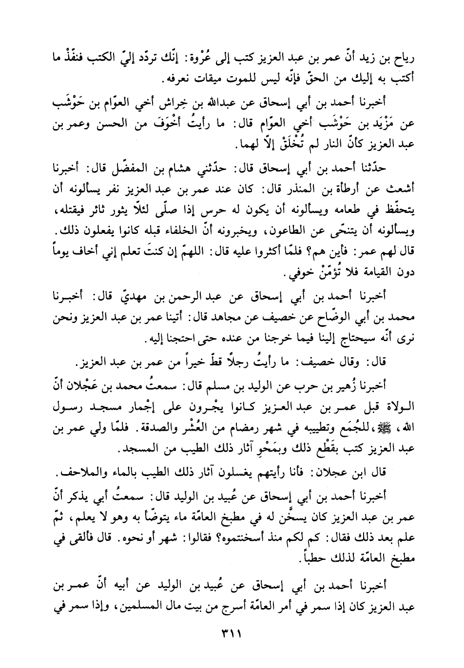 أَخْبَرَنَا أَحْمَدُ بْنُ أَبِي إِسْحَاقَ عَنْ عُبَيْدِ بْنِ الْوَلِيدِ عَنْ أَبِيهِ أَنَّ عُمَرَ بْنَ عَبْدِ الْعَزِيزِ كَانَ إِذَا سَمَرَ فِي أَمْرِ الْعَامَّةِ أَسْرَجَ مِنْ بَيْتِ مَالِ الْمُسْلِمِينَ. وَإِذَا سَمَرَ فِي