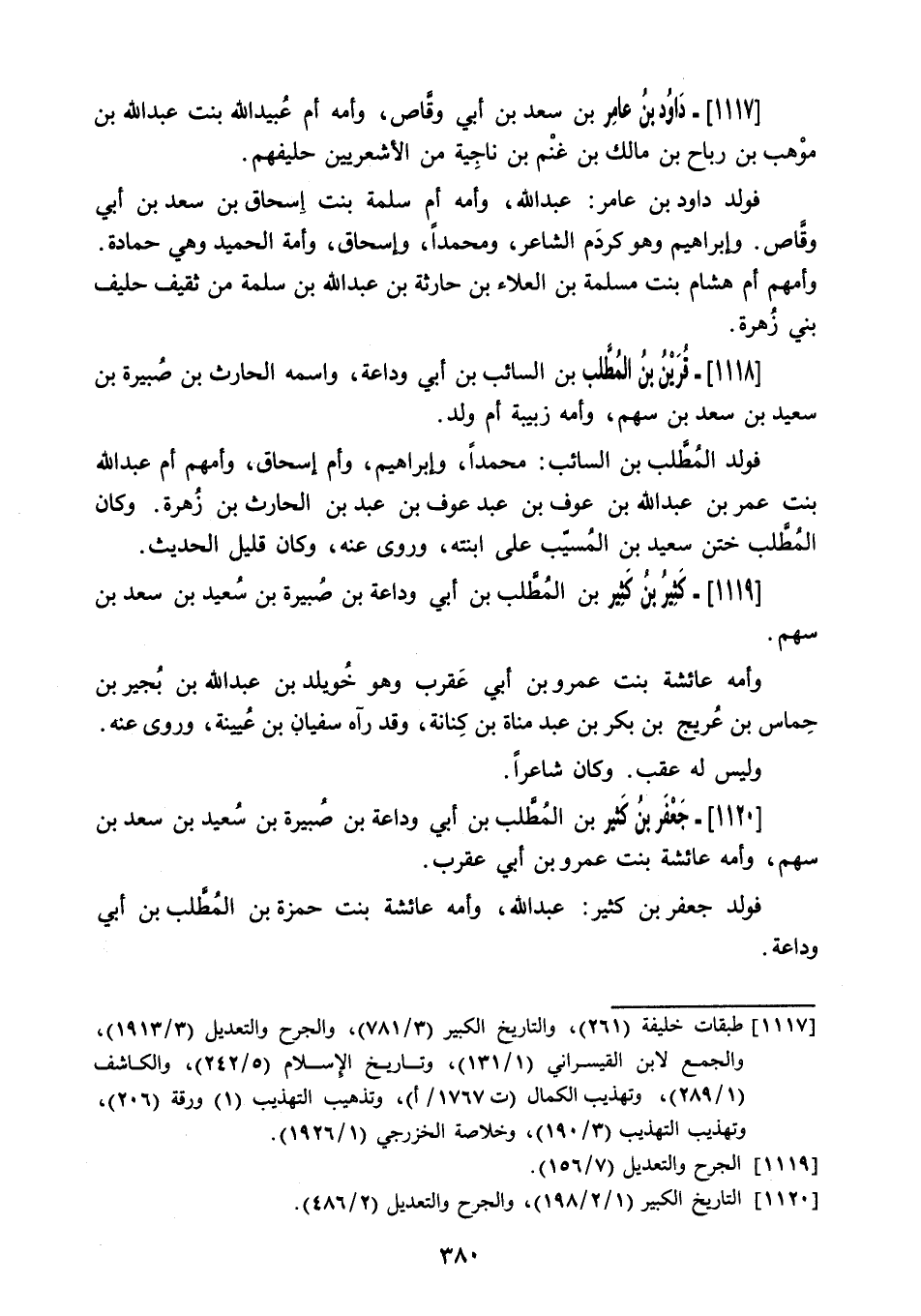 بن المطلب بن أبي وداعة بن صبيرة بن سعيد بن سعد بن سهم.