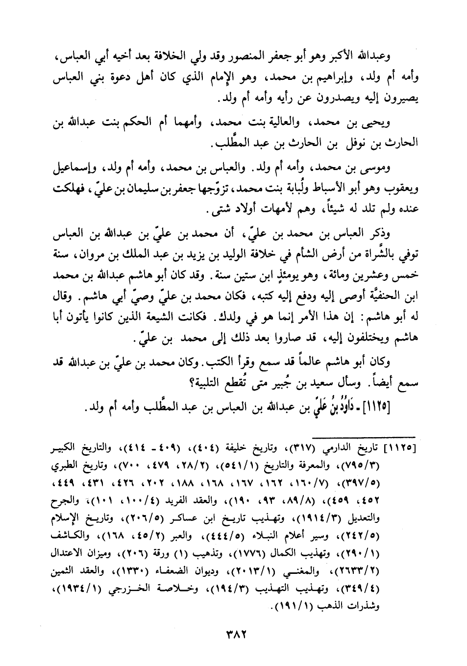 وكان أبو هاشم عالما قد سمع وقرأ الكتب. وكان محمد بن علي بن عبد الله قد سمع أيضا. وسأل سعيد بن جبير متى تقطع التلبية؟