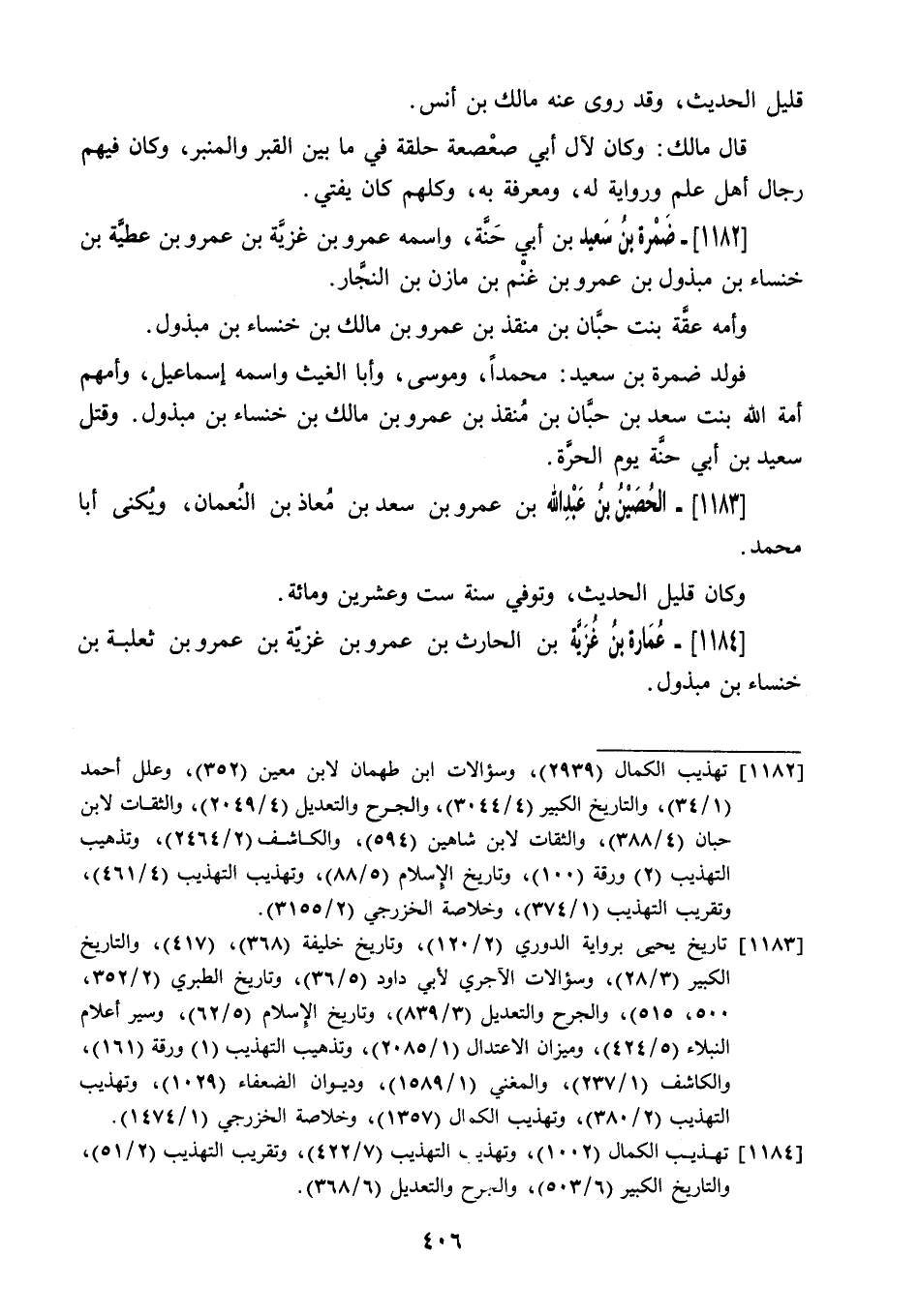 1184 تهذيب الكمال (1002) ، وتهذيب التهذيب (7/ 422) ، وتقريب التهذيب (2/ 51) ، والتاريخ الكبير (6/ 503) ، والجرح والتعديل (6/ 368) .