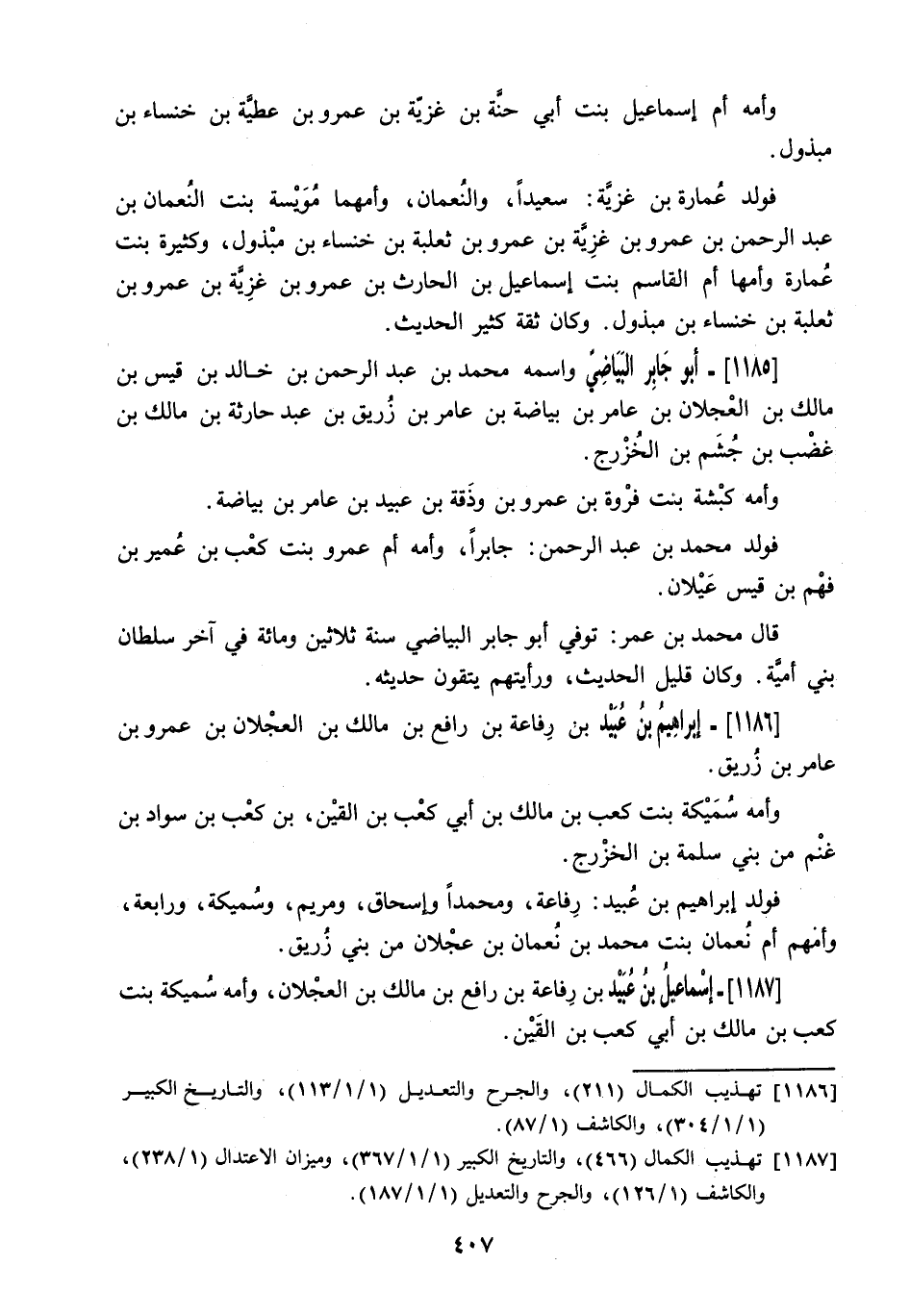 1186 تهذيب الكمال (211) ، والجرح والتعديل (1/ 1/ 113) ، والتاريخ الكبير (1/ 1/ 304) ، والكاشف (1/ 87) .