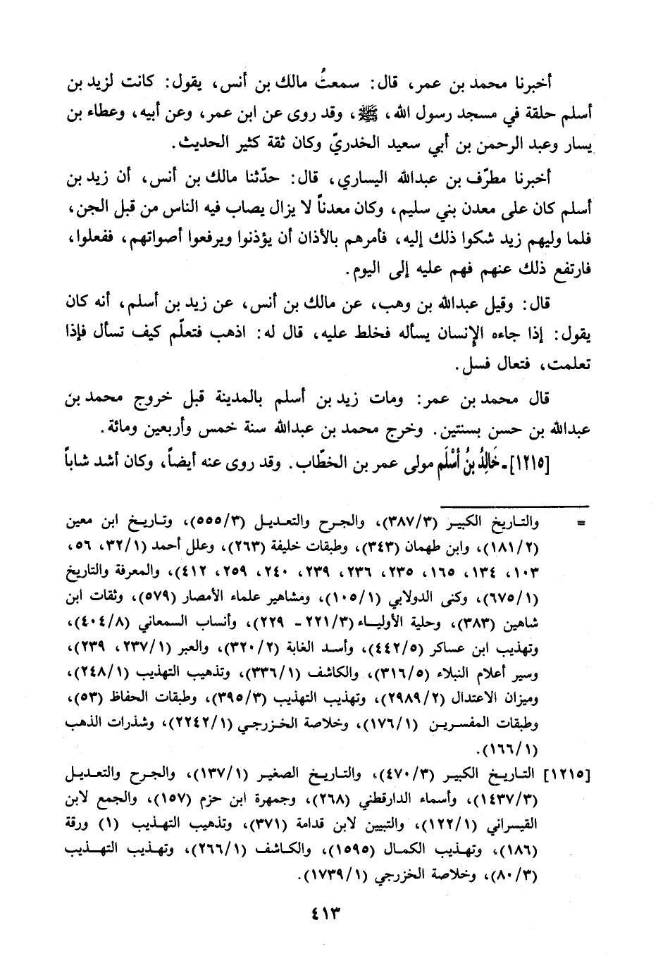 أخبرنا محمد بن عمر. قال: سمعت مالك بن أنس. يقول: كانت لزيد بن أسلم حلقة فِي مَسْجِدِ رَسُولِ اللَّهِ - صَلَّى اللَّهُ عَلَيْهِ وسلم - وقد روى عن ابن عمر. وعن أبيه. وعطاء بن يسار وعبد الرحمن بن أبي سعيد الخدري وكان ثقة كثير الحديث.
