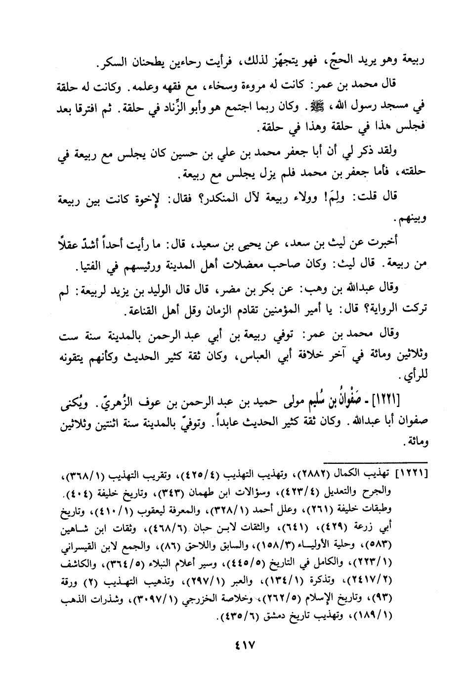 وَلَقَدْ ذُكِرَ لِي أَنَّ أَبَا جعفر محمد بن علي بن حسين كَانَ يَجْلِسُ مَعَ رَبِيعَةَ فِي حَلْقَتِهِ. فَأَمَّا جَعْفَرُ بْنُ مُحَمَّدٍ فَلَمْ يَزَلْ يَجْلِسُ مَعَ رَبِيعَةَ.