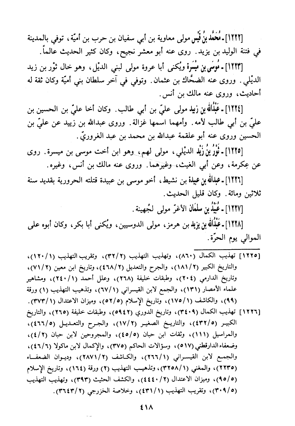 1225 هذيب الكمال (860) ، وتهذيب التهذيب (2/ 32) ، وتقريب التهذيب (1/ 120) ، والتاريخ الكبير (2/ 181) ، والجرح والتعديل (2/ 468) ، وتاريخ ابن معين (2/ 71) ، وتاريخ الدارمي (204) ، وطبقات خليفة (268) ، وعلل أحمد (1/ 240) ، ومشاهير علماء الأمصار (131) ، والجمع لابن القيسراني (1/ 67) ، وتذهيب التهذيب (1) ورقة (99) ، والكاشف (1/ 175) ، وتاريخ الإسلام (5/ 52) ، وميزان الاعتدال (1/ 373) .