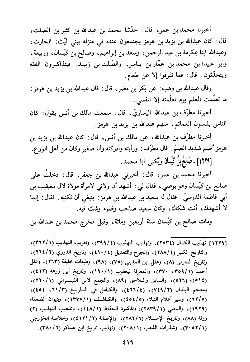 ومات صالح بن كيسان سنة أربعين ومائة. وقبل مخرج محمد بن عبد الله بن