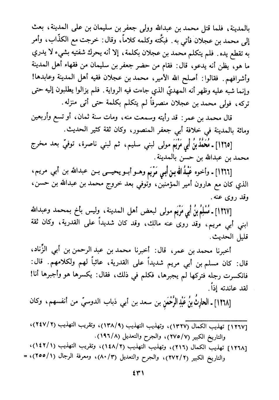 1267 تهذيب الكمال (1327) ، وتهذيب التهذيب (9/ 138) ، وتقريب التهذيب (2/ 247) ، والتاريخ الكبير (7/ 275) ، والجرح والتعديل (8/ 196) .