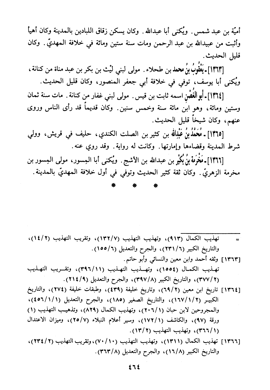 1366 تهذيب الكمال (1311) ، وتهذيب التهذيب (10/ 70) ، وتقريب التهذيب (2/ 234) ، والتاريخ الكبير (8/ 16) ، والجرح والتعديل (8/ 363) .