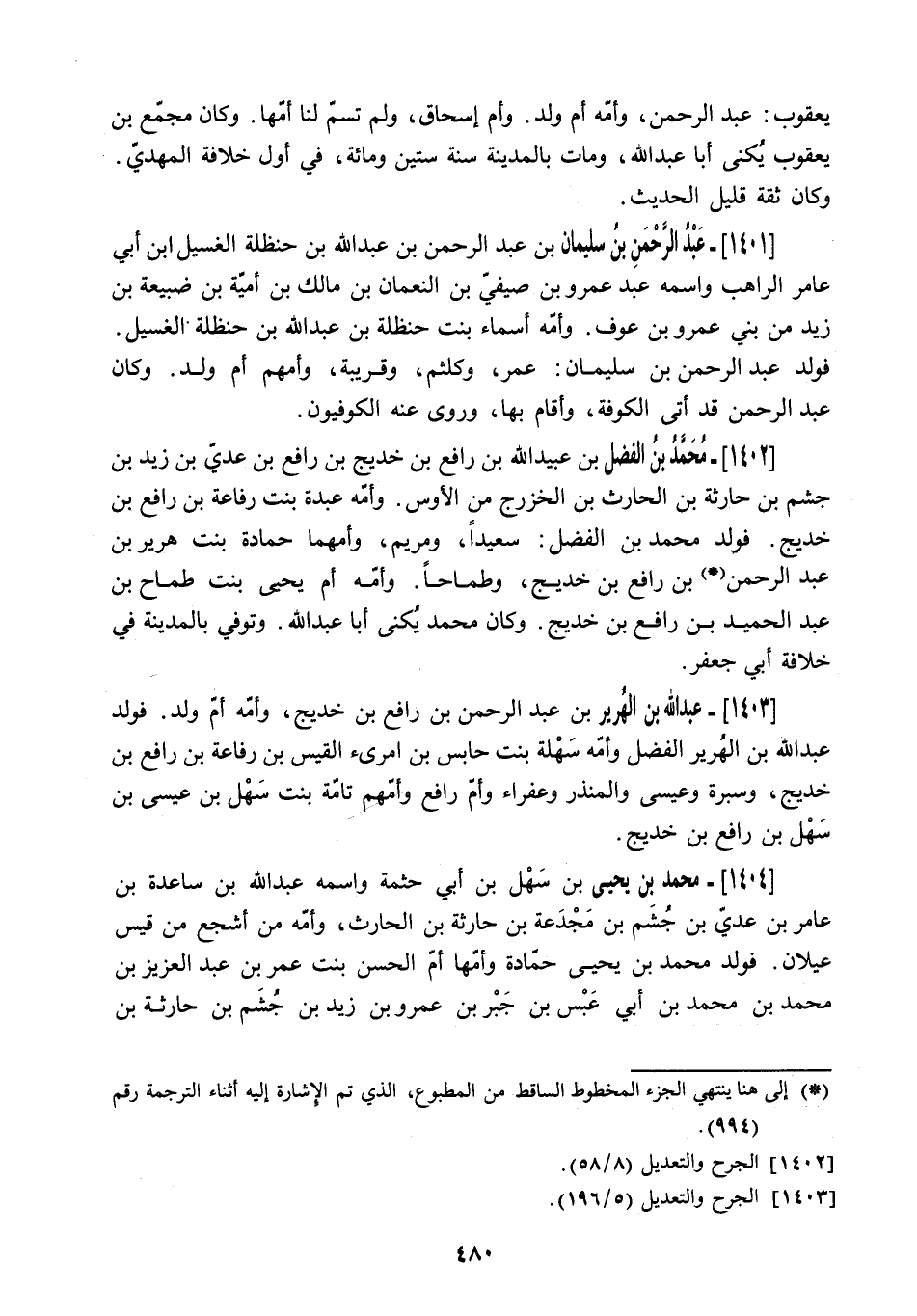 (1) إلى هنا ينتهي الجزء المخطوط الساقط من المطبوع، الذي تم الإشارة إليه أثناء الترجمة رقم 994.