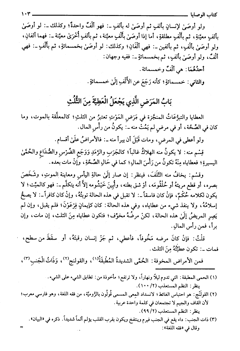 قسم منه: لا يكون منه الهلاك غالباً؛ الجرب والرمد ووجع الضرس والصداع والحمى اليسيرة؛ فعطاياه منه تكون من رأس المال؛ ما في حال الصحة، وإن مات بعده.