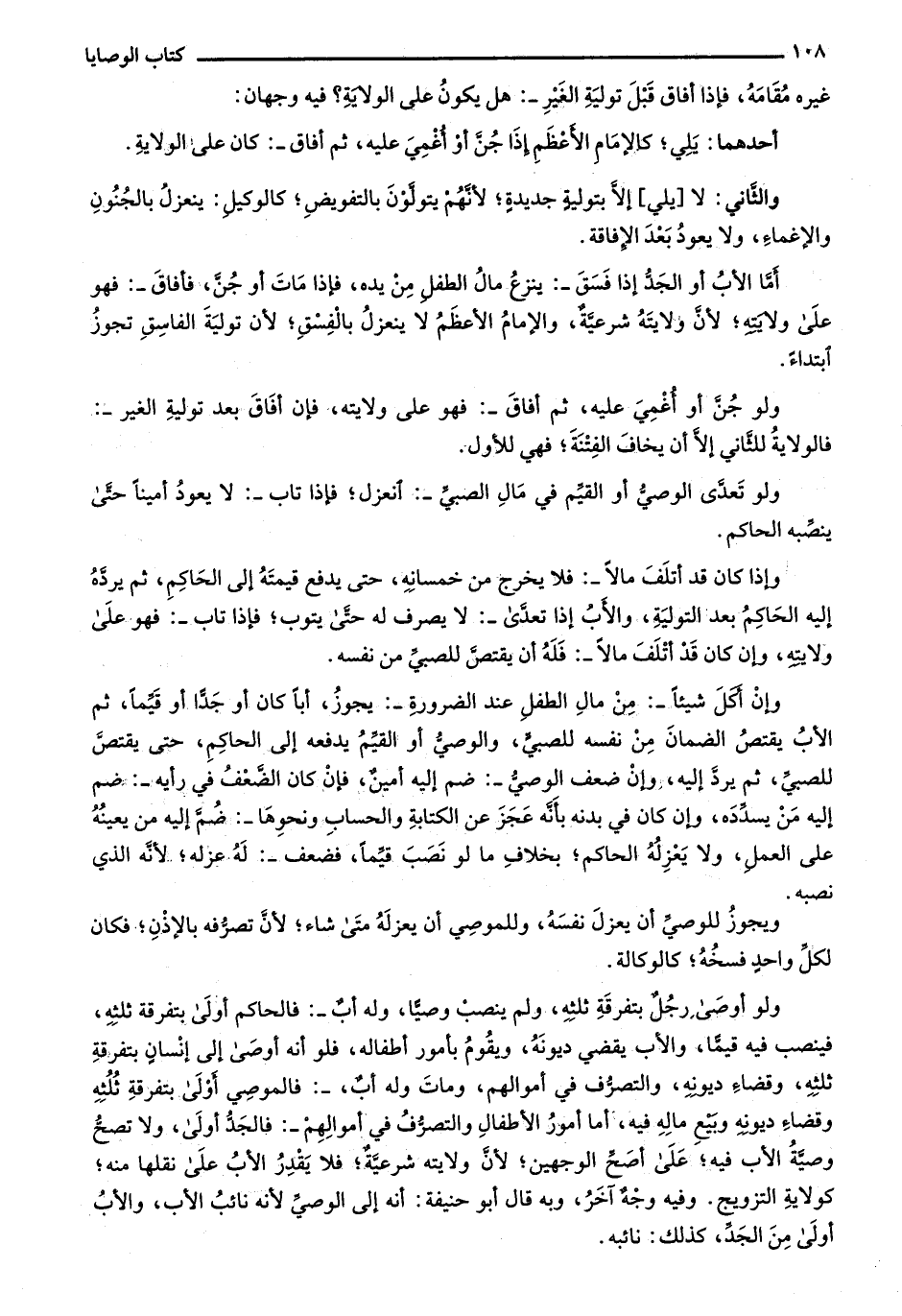 ولو أوصى رجل بتفرقة ثلثه، ولم ينصب وصيًّا، وله أب-: فالحاكم أولى بتفرقة ثلثه، فينصب فيه قيماً، والأب يقضي ديونه، ويقوم بأمور أطفاله، فلو أنه أوصى إلى إنسان بتفرقة ثلثه، وقضاء ديونه، والتصرف في أموالهم، ومات وله أب،-: فالموصى أولى بتفرقة ثلثه وقضاء ديونه وبيع ماله فيه، أما أمور الأطفال والتصرف في أموالهم-: فالجد أولى، ولا تصح وصية الأب فيه؛ على أصح الوجهين؛ لأن ولايته شرعية؛ فلا يقدر الأب على نقلها منه؛ كولاية التزويج. وفيه وجه آخر، وبه قال أبو حنيفة: أنه على الوصي لأنه نائب الأب، والأب أولى من الجد، كذلك: نائبه.
