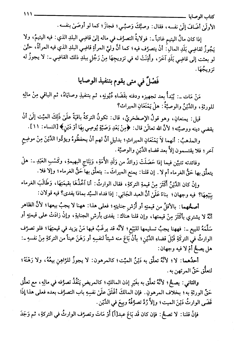 من مات-: يُبدأ بعد تجهيزه ودفنه بقضاء ديونه، ثم بتنفيذ وصاياه، ثم الباقي من ماله للورثة، والدين والوصية: هل يمنعان الميراث؟