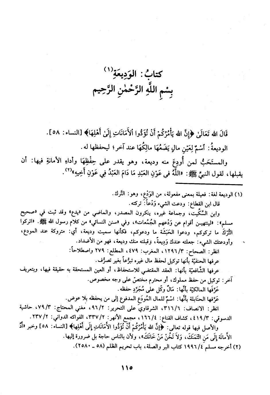 الوديعة: اسم لعين مالٍ يضعها مالها عند آخر؛ ليحفظها له.