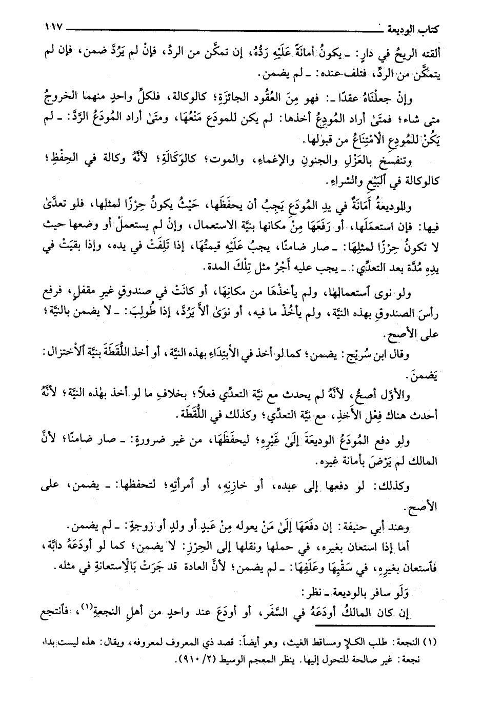 وللوديعة أمانة في يد المودع يجب أن يحفظها، حيث يكون حرزاً لمثلها، فلو تعدى فيها: فإن استعملها، أو رفعها من مكانها بنية الاستعمال، وإن لم يستعمل أو وضعها حيث لا تكون حرزاً لمثلها:- صار ضامناً، يجب عليه قيمتها، إذا تلفت في يده، وإذا بقيت في يده مدة بعد التعدي:- يجب عليه أجر مثل تلك المدة.