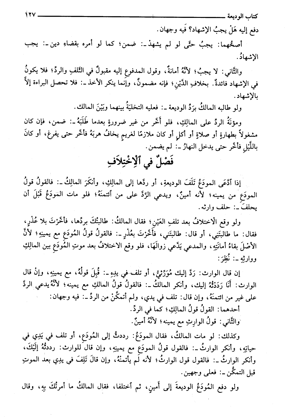 والثاني: لا يجب؛ لأنه أمانة، وقول المدفوع إليه مقبول في التلف والرد؛ فلا يكون في الإشهاد فائدة. بخلاف الدين؛ فنه مضمون، وإنما ينكر الأخذ-: فلا تحصل البراءة إلا بالإشهاد.