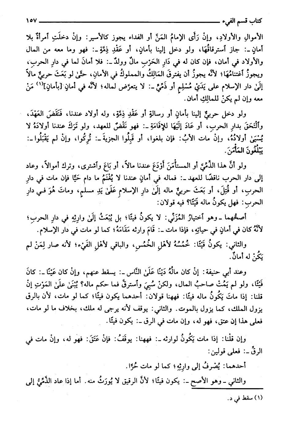 وعند أبي حنيفة: إن كان ماله ديناً على الناس-: يسقط عنهم، وإن كان عيناً-: كان فيئاً، ولو لم يمت صاحب المال، ولكن سُبي واسترق فما حكم ماله؟ يُبنى على الموت إن قلنا: إذا مات يون ماله فيئاً: فههنا قولان: أحدهما يكون فيئاً؛ كما لو مات، لأن بالرق يزول الملك، كما يزول بالموت. والثاني: يوقف لأنه يرجى له ملك، بخلاف ما لو مات، فعلى هذا إن عتق، فهو له، وإن مات في الرق-: يكون فيئاً.