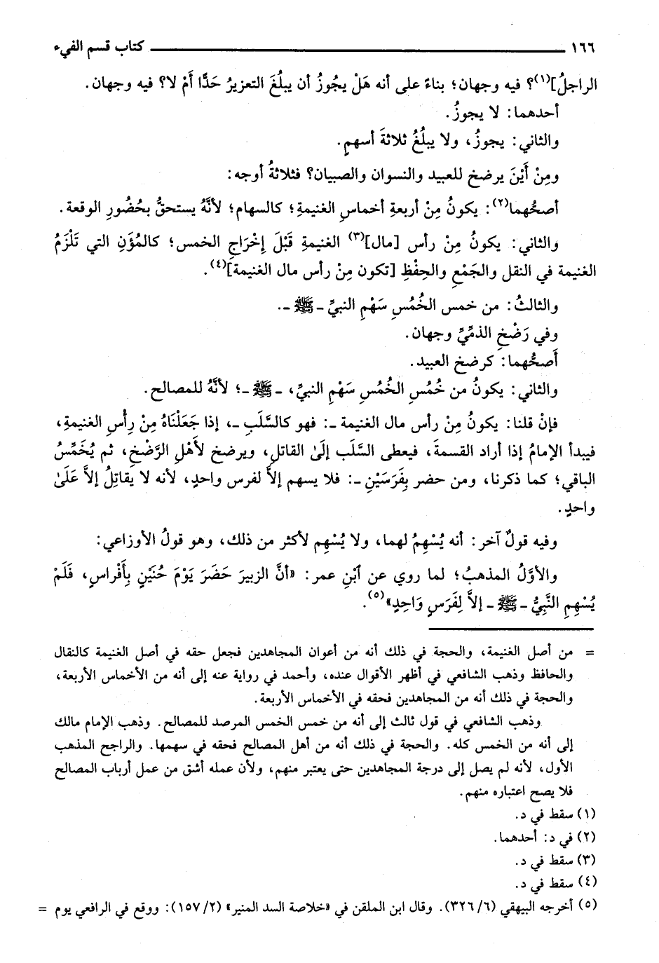 والثاني: يكون من رأس [مال] الغنيمة قبل إخراج الخمس؛ كالمؤن التي تلزم الغنيمة في النقل والمع والحفظ [تكون من رأس مال الغنيمة].