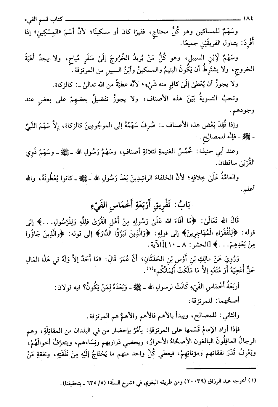 باب: تفريق أربعة أخماس الفيء
