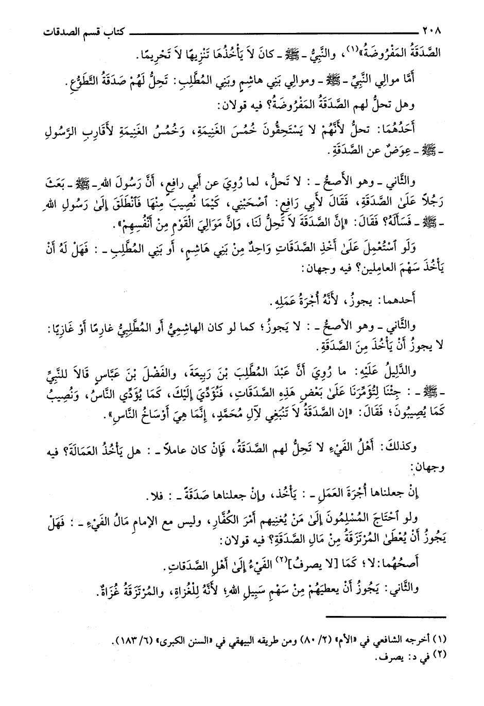 وهل تحل لهم الصدقة المفروضة؟ فيه قولان: