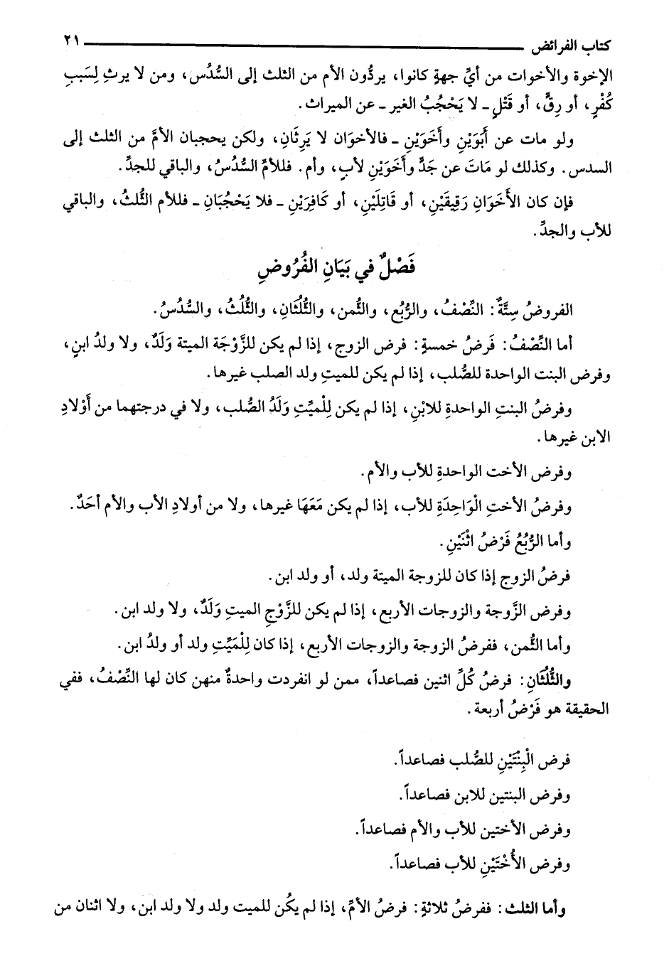 الفروض ستة: النصف، والربع، والثمن، والثلثان، والثلث، والسدس.